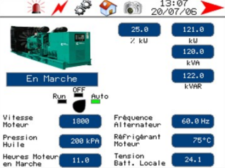 Imaginer, votre groupe électrogène alimente votre édifice en situation d'urgence. Un problème survient et votre groupe électrogène arrête. Il fait noir. C'est la panique! Au fond de votre salle électrique, un panneau de 5,7'' illumine votre pièce, avec comme image, un gyrophare rouge. Vous appuyez sur ledit gyrophare et consultez la table d'alarme. Vous visualisez rapidement le problème et prenez action pour le régler.
