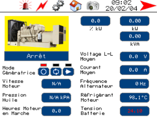 Imaginer, votre groupe électrogène alimente votre édifice en situation d'urgence. Un problème survient et votre groupe électrogène arrête. Il fait noir. C'est la panique! Au fond de votre salle électrique, un panneau de 5,7'' illumine votre pièce, avec comme image, un gyrophare rouge. Vous appuyez sur ledit gyrophare et consultez la table d'alarme. Vous visualisez rapidement le problème et prenez action pour le régler.